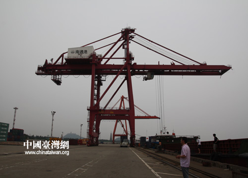 7月2日,兩岸媒體聯(lián)合采訪團(tuán)來到江蘇省南通港。據(jù)南通海事局6月份的統(tǒng)計(jì),兩岸直航以來,抵達(dá)南通港的從事兩岸直接經(jīng)貿(mào)往來船舶達(dá)到64艘次,貨物吞吐量近35萬噸。 (中國臺(tái)灣網(wǎng) 趙靜攝)