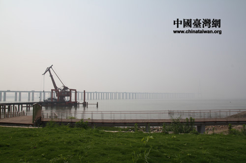 7月3日,兩岸媒體聯合采訪團來到位于江蘇省東部的南通市和蘇州市之間的蘇通大橋。大橋在濃濃的水氣中一眼望不到邊。(中國臺灣網 趙靜攝)