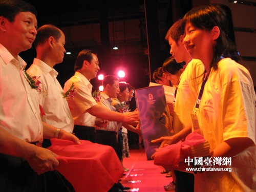 國臺辦主任助理葉克冬、北京市副市長陸昊等領導出席了開幕式,并向臺灣學生代表贈送了奧運吉祥物——福娃。