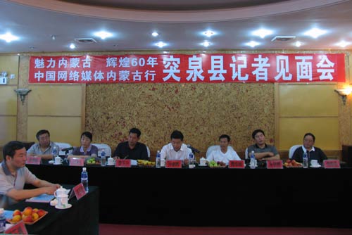 “魅力內(nèi)蒙古 輝煌60年”中國網(wǎng)絡(luò)媒體內(nèi)蒙古行突泉縣記者見面會。
