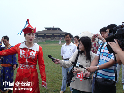美麗的蒙古族姑娘向兩岸記者介紹蒙古族生活習俗