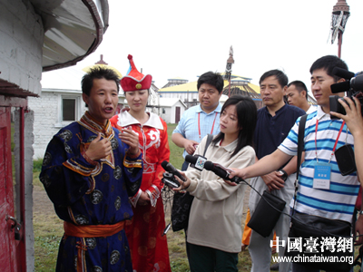 中國臺灣網7月17日呼倫貝爾消息 昨天上午,海峽兩岸記者聯合采訪團來到位于呼倫貝爾市的金帳汗蒙古部落,深入了解蒙古族人民的生活習俗和飲食文化。