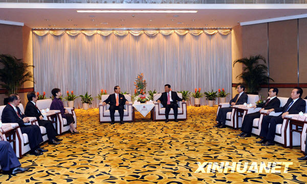 11月7日,中共中央政治局常委、全國(guó)政協(xié)主席賈慶林在寧波會(huì)見(jiàn)親民黨主席宋楚瑜、新黨主席郁慕明和出席兩岸農(nóng)漁水利合作交流會(huì)的臺(tái)灣人士。新華社記者 饒愛(ài)民 攝