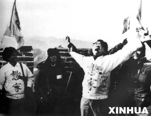 1988年1月20日,由臺灣“外省人返鄉探親促進會”組織的第一個臺灣返鄉探親團登上了長城。 新華社 發