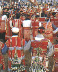 相傳賽夏人為憑吊亡靈不再作祟報復,并祈求矮人保佑平安豐收,故于豐年祭典中加入祭祀矮靈;而后更取而代之,成為該族最盛大的祭典活動。祭典舉行的時間大約在農歷 10 月 15 日左右,儀式主要分為迎靈、娛靈、逐靈三部分,活動期間長達 3 天 3 夜;由于大隘村的交通較向天湖便利,因此每次祭典皆吸引許多慕名前往的游客如織,將整個大隘村烘托得熱鬧非凡。