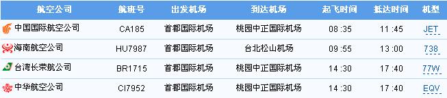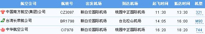 大陸(各省市)至臺灣航班情況