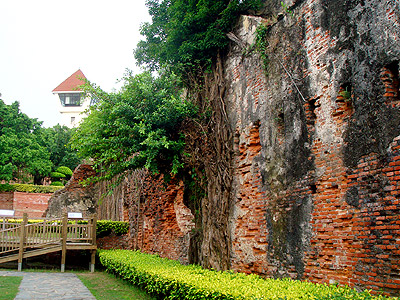因此現在的安平古堡是日治時期,日本人建于熱蘭遮城的遺址上,幾經屢次修建而成為今日的紀念館,并在光復后稱為「安平古堡」,沿用至今。目前真正荷蘭時期的遺跡,僅存古堡前方馬路邊原為外城南面城壁遺跡的磚墻。 (攝影/邱偉誠)