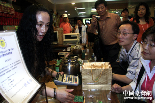 為了迎接大陸游客潮,羅兄很早就開始做準備,放棄不二價的原則,照顧大陸游客習慣,給予適當優惠。大陸游客王先生表示:看到茶行里的質量品質鑒定書,心里非常放心。老板娘是這里的原住民,為人樸實服務周到,茶葉質量有保障。而幾千臺幣的價格他們也認為可以接受。
