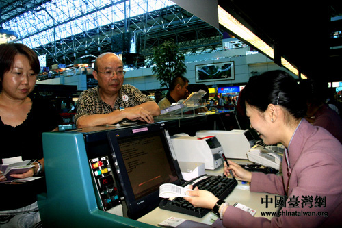 機場工作人員認真熱情地為陸客辦理登機手續(攝影:李徽)