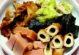 因為沒有菜單,全憑客人看著鍋內(nèi)煮料挑選,種類繁多的關(guān)東煮,從軟Q豬血糕、、高麗菜卷統(tǒng)統(tǒng)有,店家手工制作的牛蒡天婦羅,脆脆的牛蒡絲,雖然經(jīng)過熱湯熬煮仍保持口感,更成為一大招牌。