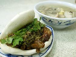 臺灣的小吃種類眾多,不過其特色能夠與美國漢堡相比的,或許就是臺灣的割包了。白面皮割包蒸好后,就像一個張開的虎嘴,里面包滿豬五花肉,因此這種食物又被稱為“虎咬豬”。