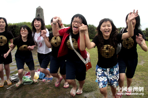 臺灣學生在鵝鑾鼻前大聲呼喊歡迎大陸游客來臺