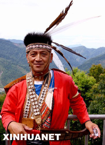 7月7日,臺灣鄒族長老湯進賢展示鄒族服飾。 鄒族是臺灣少數民族族群之一,目前有7000多人,大多以務農為生,主要分布在阿里山、高雄等山地。湯進賢在鄒族人口主要聚集地嘉義縣阿里山鄉樂野村從事旅游服務業。 新華社記者陳建力攝