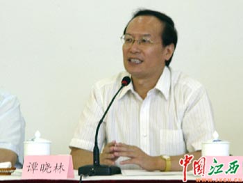 譚曉林主持“研討會”新聞發(fā)布會 中國江西網(wǎng)記者 楊冗晟 攝