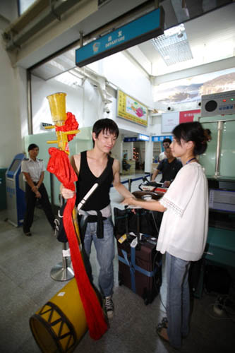 藝術團的同學經金門坐船赴臺進行慰問演出。(攝影:《民族畫報》楊博)
