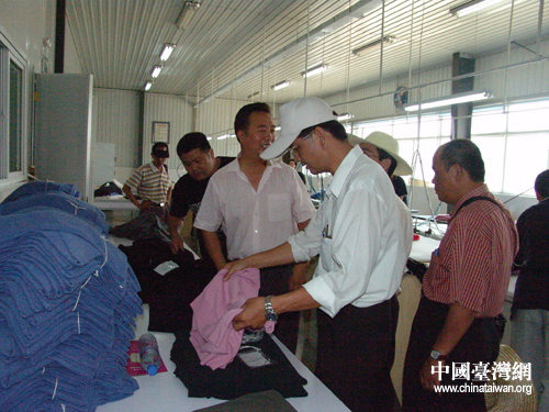 7月9日,在寧夏參加“海峽兩岸記者聯(lián)合采訪活動”的兩岸記者一行參觀采訪靈武羊絨工業(yè)園