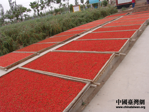 7月10日,在寧夏參加“海峽兩岸記者聯合采訪活動”的兩岸記者一行參觀采訪中寧縣萬畝枸杞園。
