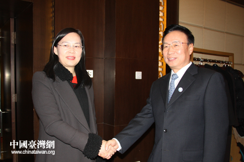 海協(xié)會秘書長李亞飛27日在京會見海基會副秘書長林淑閔率領(lǐng)的“兩岸公證業(yè)務(wù)大陸參訪團”(鐘寶華 攝)