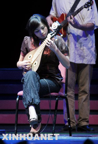 11月26日,臺(tái)灣“絲竹空”爵士樂(lè)團(tuán)在表演爵士樂(lè)《鳳陽(yáng)》。 當(dāng)日,首屆海峽兩岸(廈門(mén))文化產(chǎn)業(yè)博覽交易會(huì)開(kāi)幕式文藝晚會(huì)在廈門(mén)人民會(huì)堂舉行,來(lái)自海峽兩岸的藝術(shù)家同臺(tái)演出,共敘文緣。 新華社記者 姜克紅 攝