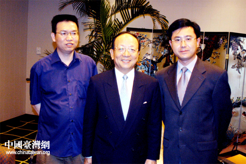 2005年5月,東南衛視副總監孫原(中)率《海峽新干線》記者薛含喆(左)等跟蹤采訪親民黨主席宋楚瑜大陸行