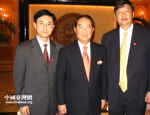 東南衛視主持人成洋(左一)與親民黨主席宋楚瑜合影