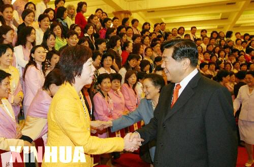 9月20日,中共中央政治局常委、全國政協主席賈慶林在北京人民大會堂會見出席海峽兩岸婦女系列交流活動的臺灣及港澳婦女人士。 新華社記者黃敬文攝