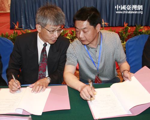 鄂臺兩地工商、企業等團體代表現場進行了合作新項目的簽約儀式。(中國臺灣網 高斯斯 攝)