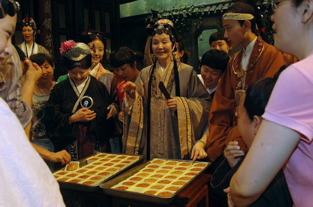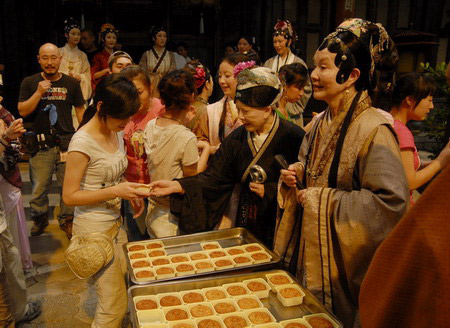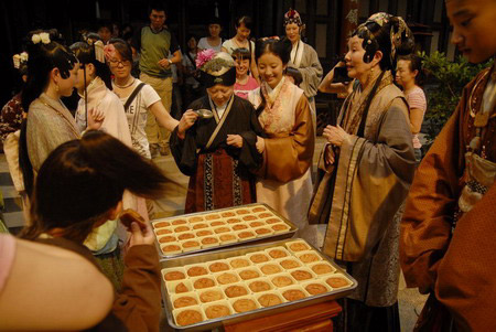由李少紅執導的新版電視劇《紅樓夢》自5月25日開機以來,已有3個多月了,目前劇組正在北影廠如火如荼地拍攝中。近日,在“秋爽齋”的拍攝現場,筆者竟然看到所有演職人員提前吃起了蛋黃月餅,這是怎么回事呢?