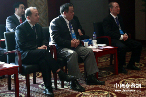 國臺辦主任助理龍明彪,國臺辦經濟局副局長、全國臺企聯常務副會長于紅會見前來參加“兩岸新能源·新技術發展研討會”的臺商代表。(中國臺灣網 王怡然 攝)