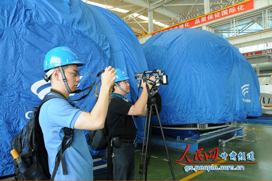 臺灣“中國電視公司”和中國時報的記者在酒泉參觀風電裝備制造企業