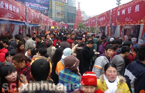 1月1日,2009成都臺灣風情周在成都萬達廣場拉開帷幕,130個小吃攤位、30多種臺灣小吃現(xiàn)做現(xiàn)賣,還有臺灣民間藝人的風情表演,現(xiàn)場游人絡(luò)繹不絕。