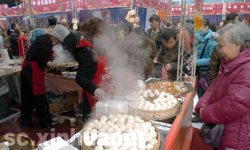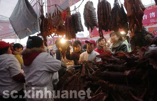 1月2日,在成都市萬達廣場,臺灣小吃攤位生意紅火。 新華社記者 江宏景 攝 1月1日,2009成都臺灣風情周在成都萬達廣場拉開帷幕,130個小吃攤位、30多種臺灣小吃現(xiàn)做現(xiàn)賣,還有臺灣民間藝人的風情表演,現(xiàn)場游人絡(luò)繹不絕。 1月2日,幾位成都市民在采購年貨。隨著春節(jié)的臨近,許多市民利用元旦假期開始選購年貨,為過農(nóng)歷新年做準備。 新華社記者 江宏景 攝