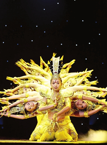 舞臺上煙云裊繞,渾身金光閃爍的邰麗華,帶著祥和動人的微笑面對成都觀眾,曾在央視春節晚會上征服全國觀眾的“千手觀音”零距離地出現在眼前,每只手上一只慈悲之眼,每個整齊得不可思議的動作詮釋著大愛的無窮能量。昨晚,中國殘疾人藝術團帶來的大型晚會“我的夢”在錦城藝術宮進行了成都首演,同時也是一場邀請地震災區群眾和子弟兵們免費觀賞的義演——精彩的表演和殘疾演員們對生命與藝術的頑強追求令成都觀眾掌聲不絕,淚眼婆娑。