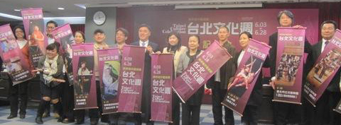 臺(tái)北市政府利用今天市政會(huì)議會(huì)后記者會(huì)舉行“兩岸城市藝術(shù)節(jié)─臺(tái)北文化周”宣告啟動(dòng)記者會(huì)。包括明華園團(tuán)長(zhǎng)陳勝福、優(yōu)人神鼓藝術(shù)總監(jiān)劉若瑀、國(guó)光劇團(tuán)導(dǎo)演李小平、當(dāng)代傳奇劇場(chǎng)制作人林秀偉、屏風(fēng)表演班演員朱德剛,以及臺(tái)北市立交響樂(lè)團(tuán)團(tuán)長(zhǎng)黃維明、臺(tái)北市樂(lè)團(tuán)團(tuán)長(zhǎng)鍾耀光等人都出席今天記者會(huì)。