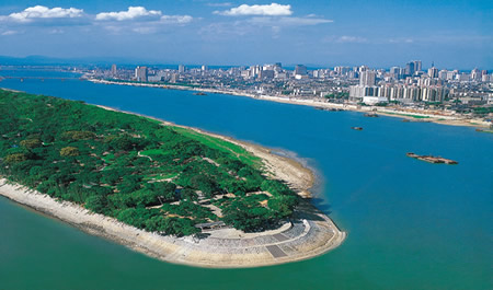 四面環水,洲上林木眾多,遠看如一艘墨綠色的巨艦,逆水揚波護衛著長沙古城。它西望岳麓,東臨城邑,南北長5km,東西寬50~200m,總面積近70hm2,是國內最著名的江心洲,也是世界上最長的內河綠洲。洲上盛產美橘,故名橘洲,自古以秀麗風光、悠久歷史著稱,是宋代著名的“瀟湘八景”之“江天暮雪”所在。橘洲“五六月間無暑氣”,是一處消夏勝地,毛澤東青年時代常來此地游泳漫步,在沙灘上進行日光浴。現橘子洲已辟為公園,植有柑橘千株,每當秋收季節,橘果累累;建有亭廊,公園中聳立著一塊巨型漢白玉紀念碑,碑上篆刻著毛澤東手書的“橘子洲頭”四個大字和他1925年秋寫的《沁園春·長沙》一詞;橘洲中部的兩側建有天然游泳場;洲上有公路縱貫南北。市政府擬將此地建成一個集園林、旅游、娛樂、體育、文化、商貿于一體的多功能國際性觀光文化名勝區。規劃中的景區分為“二廊七園”:十里湖湘文化廊、十里水上游樂廊、萬橘競秀園、回歸自然園、來者諧樂園、購物美食園、健身益壽園、風情度假園、野外生活園,擬投資20億元。