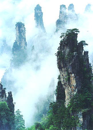 武陵源風(fēng)景區(qū)位于湖南省西北部,由張家界市的張家界森林公園、慈利縣的索溪峪自然保護(hù)區(qū)和桑植縣的天子山自然保護(hù)區(qū)組合而成,總面積500平方公里。最近又發(fā)現(xiàn)楊家界新景區(qū)。武陵源風(fēng)景區(qū)是80年代初“新發(fā)現(xiàn)”的“養(yǎng)在深閨人未識(shí)”的深山明珠。這里的砂巖峰林千奇百怪,似人似物,惟妙惟肖,在那靜謐的幽谷里,沒有任何人工雕鑿,有的是石柱石峰、斷崖絕壁、古樹名木、云氣煙霧、鳥鳴蟬噪、流泉飛瀑、珍禽異獸,人行其間,猶如到了一個(gè)神奇的世界和風(fēng)味天成的藝術(shù)山水長(zhǎng)廊。