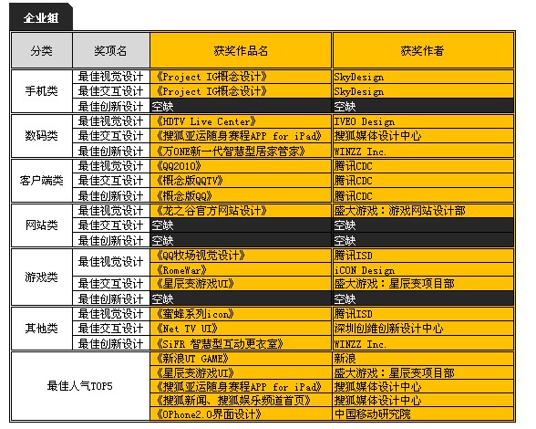 2010 Digital UI 優(yōu)秀用戶界面設(shè)計(jì)大賽獲獎(jiǎng)名單