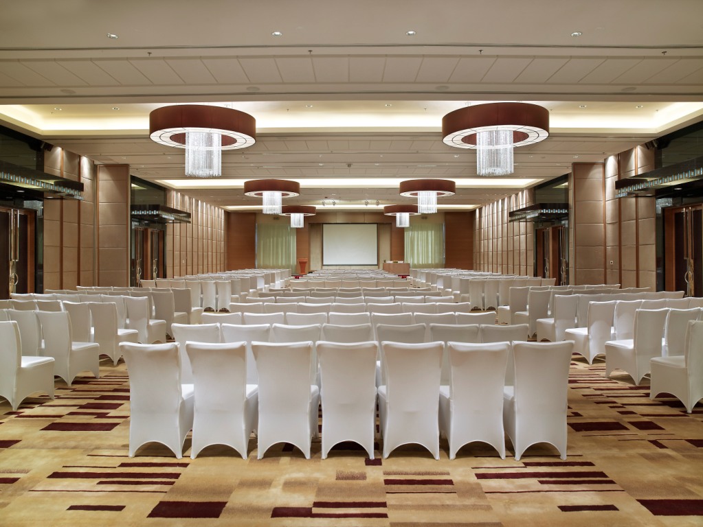 1127平方米的會議與宴會場地可同時容納966位顧客,是舉行公司會議、商務活動、大型慶典及其它活動的理想選擇?扇菁{720人座位的無柱式空間高挑大宴會廳和7間獨立宴會廳,快速的會議通道及團隊入口、先進的現代化與會設施以及專業的宴會團隊,確保您各種會議及活動的成功。寬敞、時尚的弧形宴會前廳更是賓客會議前小聚與絕佳休息之地。商務中心提供全面的綜合性服務,包括電腦工作室、私人會談室以及一系列的秘書服務。