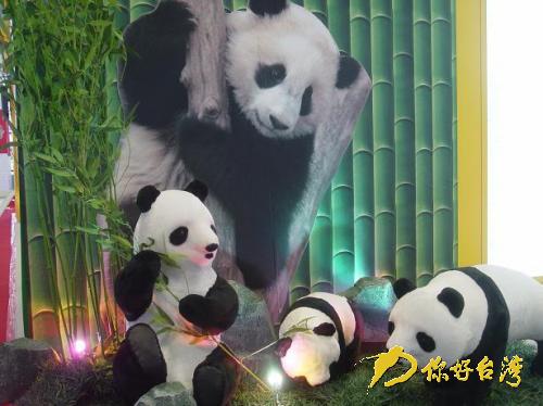 在大陸展區里,各省市代表團爭相凸顯各自的旅游特色,山光水色濃縮在展區當中,讓人目不暇接。圖為四川展區大熊貓。
