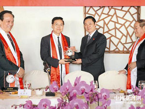 劉奇葆(右二)出席四川省感謝臺灣社會各界援助“5·12”地震災區見面會,向臺灣救援隊、醫療隊、志愿者、援建單位代表和新聞單位的朋友贈送抗震救災紀念章。圖片來源:四川省臺辦