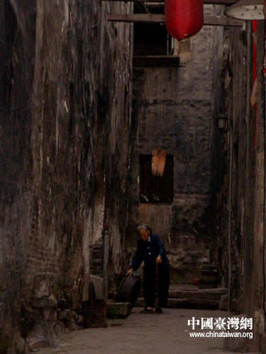 依然生活在古鎮(zhèn)中的老人已經(jīng)90歲,依然能夠干活。