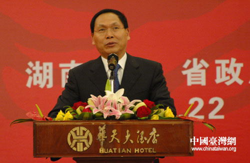 參訪團團長、臺南市地方民意代表李錦泉對湖南省的熱情接到表示感謝,他指出,湖南省近年來在經(jīng)濟、交通等各方面去的了飛速發(fā)展,吸引了越來越多的臺資企業(yè)來此發(fā)展,在開通長沙市到臺灣的空港直航點,岳陽到臺灣的水路直航港口以后,湘臺兩地交往更方便了。希望湘臺兩地擴大交流,攜手合作,共同面對全球金融風(fēng)暴,帶動兩岸經(jīng)濟發(fā)展。