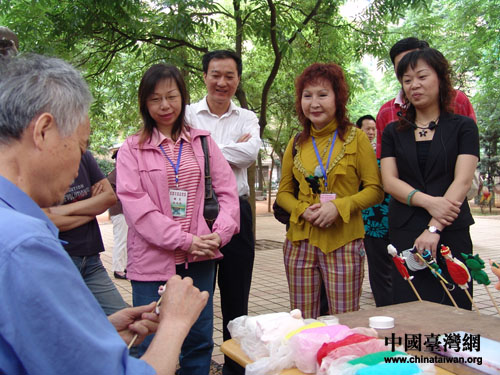知道臺(tái)灣的客人要來(lái),社區(qū)剪紙、捏泥人的民間藝人也欣然獻(xiàn)藝。繁體“中華一家親”的剪紙獨(dú)具特色,奧運(yùn)福娃、孫悟空、豬八戒等形象的泥人惟妙惟肖,引來(lái)里長(zhǎng)們的贊嘆與敬佩,泥人也成為客人告別社區(qū)時(shí)收到的禮物。