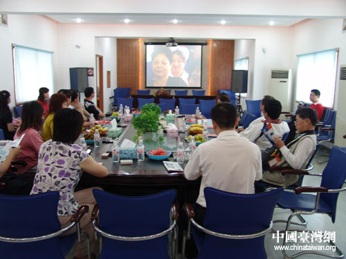 高雄市的里長(zhǎng)們和廖家灣社區(qū)及所屬街道辦的領(lǐng)導(dǎo)和志愿者座談交流,圖為里長(zhǎng)們?cè)谟^看廖家灣社區(qū)的宣傳片。 |