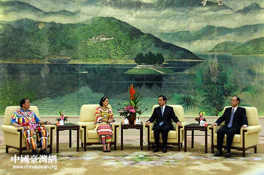 8月19日下午,中共中央臺(tái)辦主任王毅在北京人民大會(huì)堂會(huì)見(jiàn)了高金素梅率領(lǐng)的臺(tái)灣少數(shù)民族代表團(tuán)一行。(中國(guó)臺(tái)灣網(wǎng) 鐘寶華 攝)