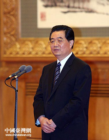 8月19日下午,中共中央總書記胡錦濤在人民大會堂會見了高金素梅率領的臺灣少數民族代表團,圖為胡錦濤發表重要講話。(中國臺灣網 鐘寶華 攝)