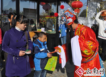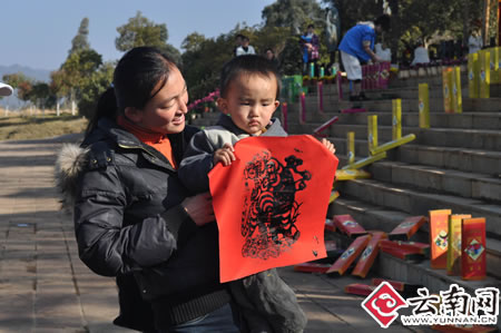 野生動物園春節推出的一系列春節活動也獲得游客的喜愛。最受游客歡迎的是“自制年畫帶回家”活動。由于持有門票就可參加活動,年畫印制現場每天都排起了長龍。游客張女士說,年畫上有不同的“虎”的圖案,我們昆明話的“拓虎印”和“托福運”是一樣的,這樣的年畫當然要多帶兩張回家貼貼。而且這種印制年畫的方式是我國民間的傳統方法,現在已經很見不到了。