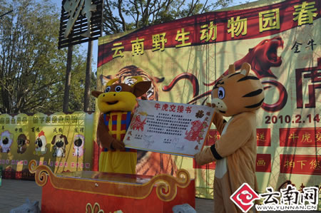 正值虎年,不少人選擇到野生動物園看老虎,沾虎氣。云南野生動物園虎年春節黃金周游客量超過9萬人次,比2009年春節增長了5%。公園春節期間推出的“百虎鬧春”、“牛虎交接儀式”、“財神爺送紅包”、“虎年說虎文化展”、“自制年畫帶回家”等活動吸引了游客的關注,新展出的3只小白虎、紅毛猩猩寶寶、斑馬寶寶等小動物更是成為游客爭相追捧的對象。