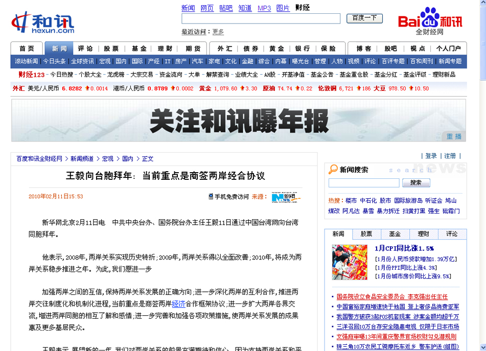 他表示,2008年,兩岸關系實現歷史轉折;2009年,兩岸關系得以全面改善;2010年,將成為兩岸關系穩步推進之年。為此,我們愿進一步