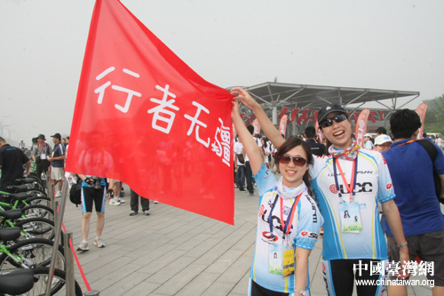 “行者無疆 綠色騎行”,兩名臺灣青年在活動中留影紀念。(中國臺灣網 于斯文 攝)